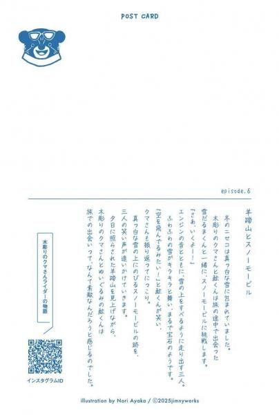 『木彫りのクマさんライダー』は、北海道のとある田舎町にある小さな家に飾ってあった“木彫りのクマ”が家主の大好きな“バイクの模型”に跨り、友達の“ぬいぐるみの鮭”と一緒に北海道各地を旅する姿をモチーフにした、冒険ストーリー・ブランドです。